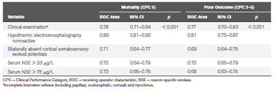 A multimodal approach is intuitively best but what’s the minimum you need to include in a predictive model? This small-but-nice study suggests clinical examination PLUS electroencephalography reactivity PLUS serum neuron-specific would give near certain forecast of a dreadful outcome.